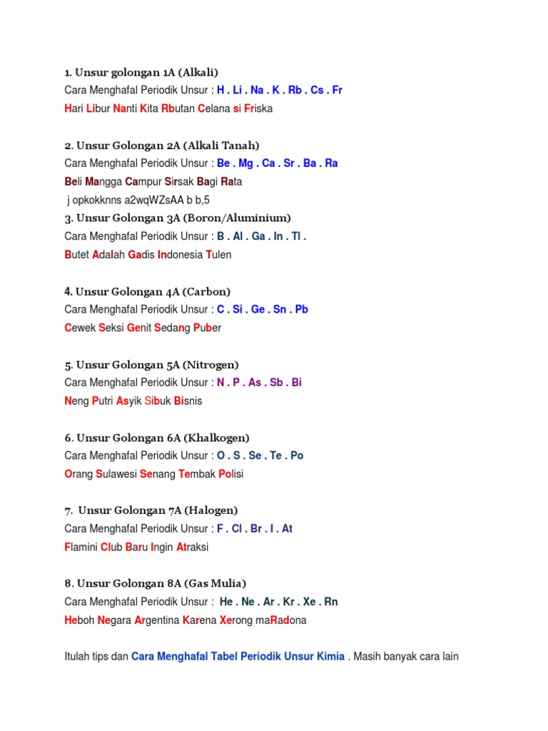 Cara Mudah Menghafal Tabel Periodik Kimia Dengan Gokil Buat Cai Tania Riwu Academia Edu - Buat kamu yang selalu dibuat pusing dan bingung oleh tabel periodik, berikut ini ada beberapa cara menghafal tabel periodik.