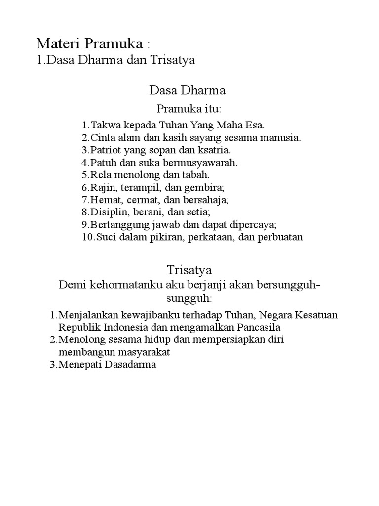Dasa Darma Pramuka 1-10 / Sahabat pramuka yang berbahagia… pramuka adalah singkatan dari praja muda karana yang artinya sekumpulan kaum anak muda yang memiliki karya atau sedang berkarya.