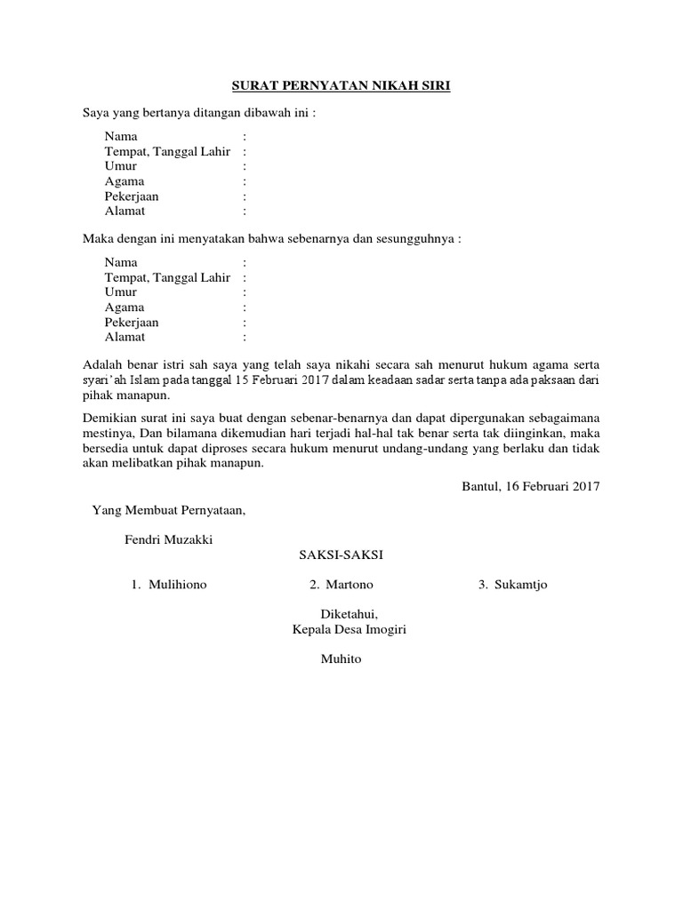 Contoh Surat Nikah Siri Resmi - Fitri juli 18, 2020 at 20:41.