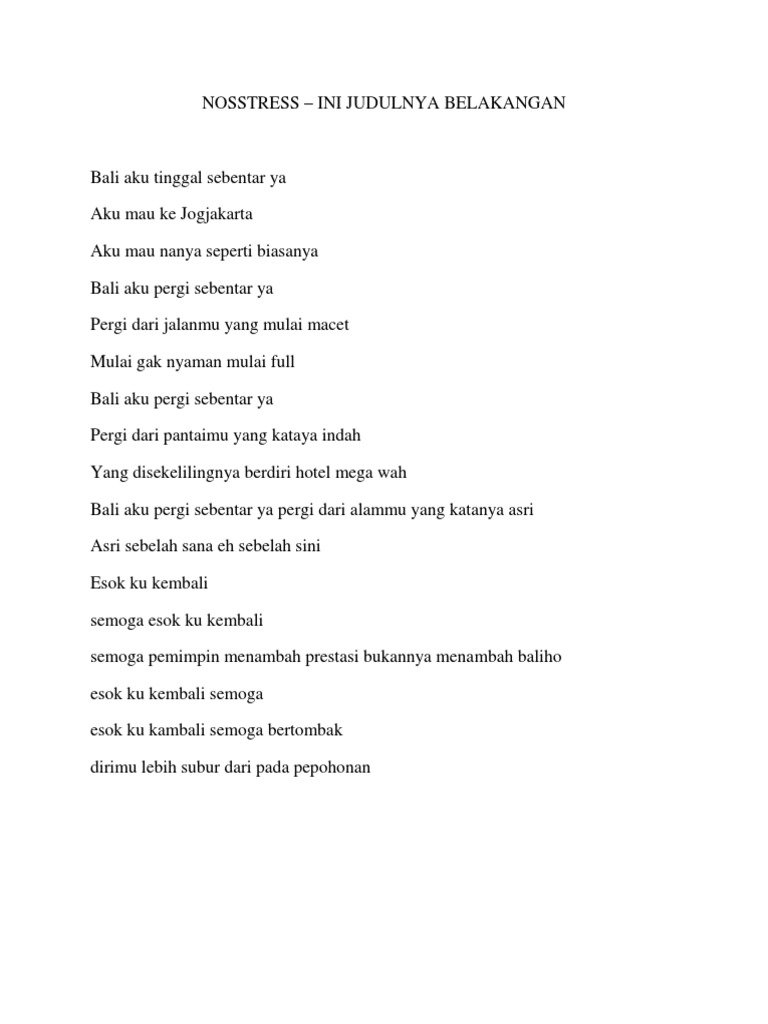 Lirik Lagu Indie Judulnya Belakangan Nosstres Wattpad - Bali aku tinggal sebentar ya, aku mau ke jogjakarta aku mau nyanyi seperti biasanya bali aku pergi sebentar ya, pergi dari jalanmu yang mulai macet.
