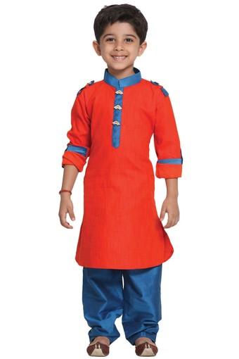 Buy Vastramay Boys Red And Turquoise Cotton Pathani Suit Set Shoppers Stop - Moreover, silk kurta pajama for mostly, their draped kurta style, asymmetric kurta, and jacket with kurta are so much in demand.